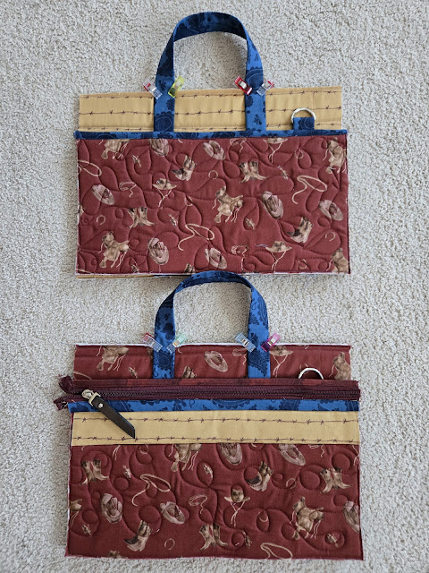 I am also making these byannie bags. The outside of the bag and inside/outside pockets are ready to sew down tomorrow after work. Next will be the pages that velcro inside.